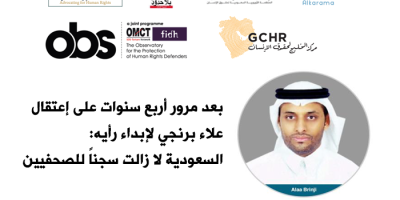 بعد مرور أربع سنوات على إعتقال علاء برنجي لإبداء رأيه:السعودية لا زالت سجناً للصحفيين.